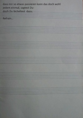 dass mir so etwas passieren kann das doch wohl jedem einmal, sagtest Du- doch Du lächeltest dazu. Refrain…